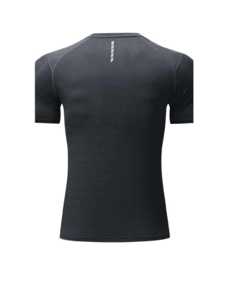 Unleash your potential with our cutting-edge Active Men Short Sleeve Compression with Reflective Strips, crafted for those who demand style, comfort and function. This sleek black athletic shirt showcases a sophisticated geometric pattern with diamond-shaped mesh details, offering breathable support where you need it most. Designed with a snug but not too tight, performance-enhancing fit, it features reflective elements on the shoulders and back to keep you visible and secure, even in low light. Made from premium moisture-wicking fabric, this top ensures you stay cool and dry during intense workouts or everyday adventures.