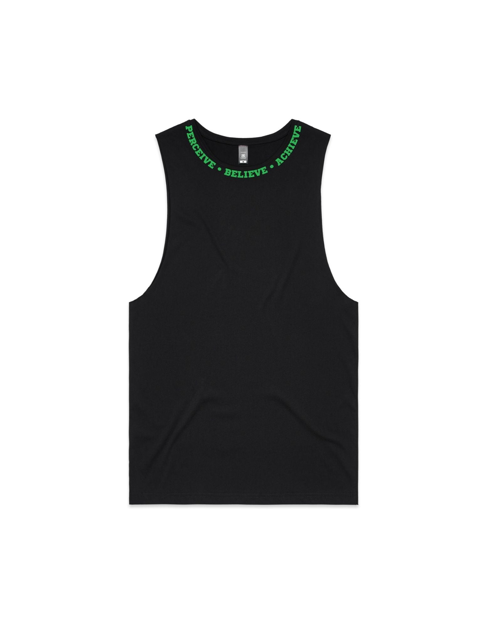 Sleeveless tank, raw armhole edges, neck ribbing, double needle bottom hem, pre-shrunk to minimise shrinkage.